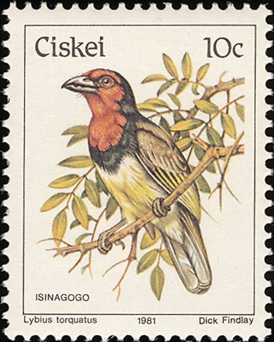 Visibility: public Image owner: none postage 12/4/1981 10c issue=birds unwmk Crops No visible images cropped from this one. Measurements Resolution is unknown. Source Source name: Colnect File URL: http://i.colnect.net/b/1476/729/Black-collared-Barbet-Lybius-torquatus.jpg Uploaded January 22, 2014, 6:57 pm by Stan Shebs |