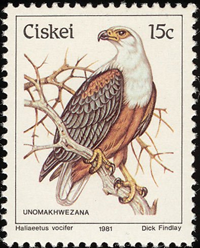 Visibility: public Image owner: none postage 12/4/1981 15c issue=birds unwmk Crops No visible images cropped from this one. Measurements Resolution is unknown. Source Source name: Colnect File URL: http://i.colnect.net/b/1476/730/African-Fish-Eagle-Haliaeetus-vocifer.jpg Uploaded January 22, 2014, 6:57 pm by Stan Shebs |